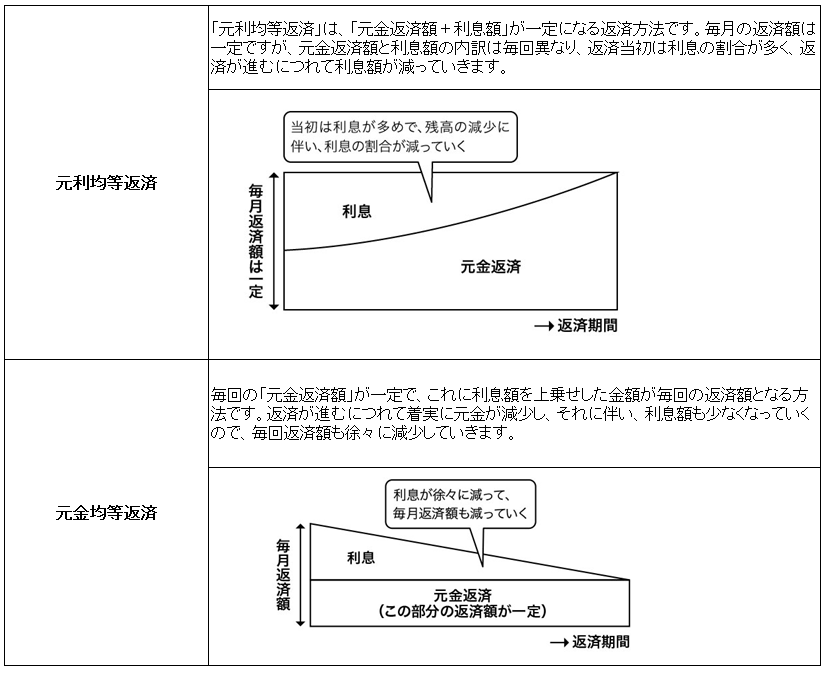 元利均等返済は、毎月の返済額が一定で、返済期間の経過とともに毎月の元金の返済額が増加する返済方法