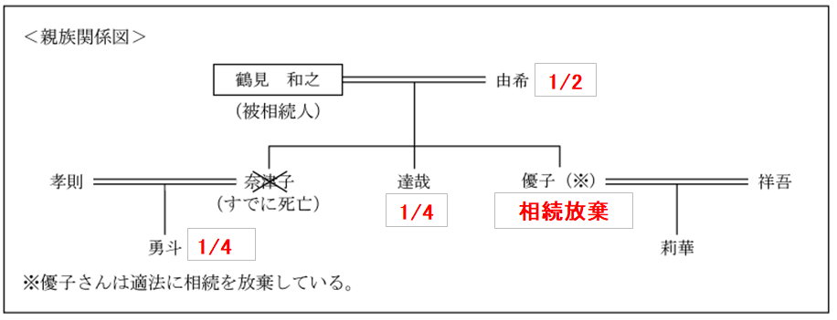 FP3級実技問題 2023年9月13 FP3級実技問題 2023.10.252023.10.26 下表は、定期借地権についてまとめた表である。下表の空欄(ア)~(ウ)にあてはまる数値または語句の組み合わせとして、最も適切なものはどれか。 1.由希 1/2 達哉 1/2 2.由希 1/2 達哉 1/4 勇斗 1/4 3.由希 1/2 達哉 1/6 勇斗 1/6 莉華 1/6 番号を選択2.由希 1/2 達哉 1/4 勇斗 1/4 12問目 法定相続 14問目