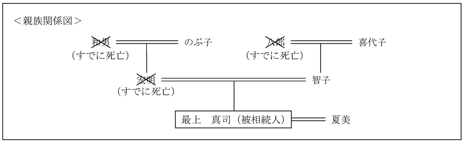 2023年5月2日に相続が開始された最上真司さん(被相続人)の<親族関係図>が下記のとおりである場合、民法上の相続人および法定相続分の組み合わせとして、最も適切なものはどれか。なお、記載のない条件については一切考慮しないこととする。