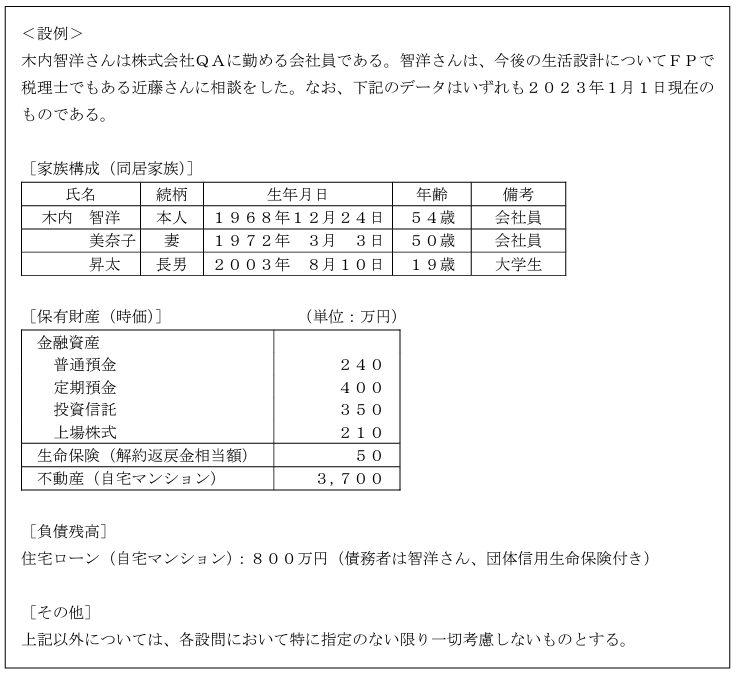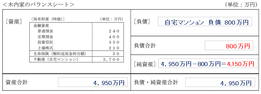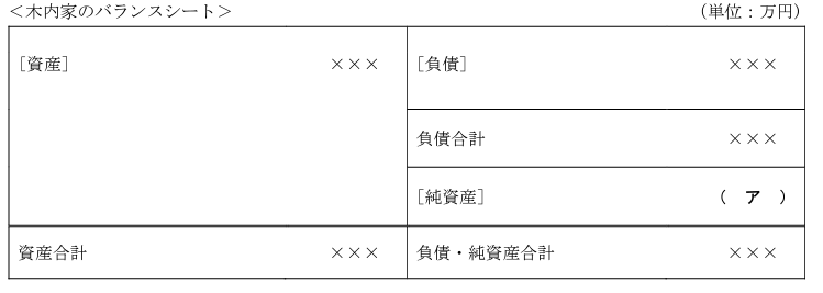 FPの近藤さんは、木内家のバランスシートを作成した。下表の空欄(ア)にあてはまる金額として、正しいものはどれか。なお、<設例>に記載のあるデータに基づいて解答することとする。