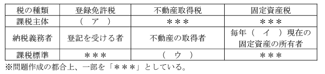 1.(ア)国 (イ)4月1日 (ウ)固定資産税評価額