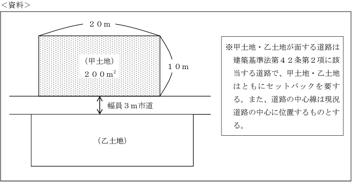 下記<資料>の甲土地の建築面積の最高限度を算出する基礎となる敷地面積として、正しいものはどれか。なお、この土地の存する区域は特定行政庁が指定する区域に該当しないものとし、その他記載のない条件については一切考慮しないこととする。
