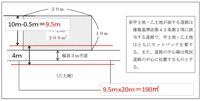 乙土地が崖などの時には1mのセットバックになります。
